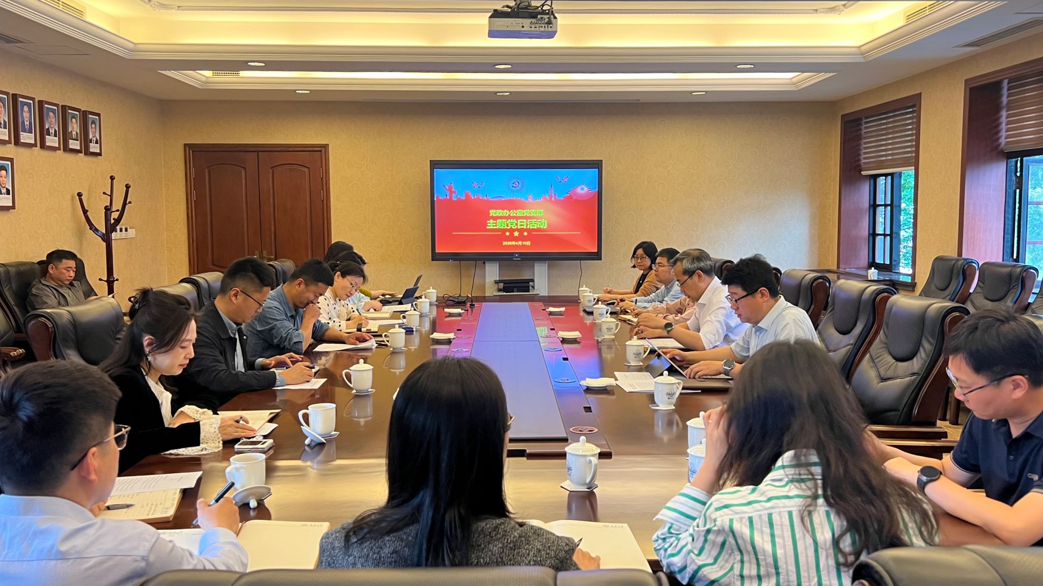 2026年4月10日下午,党政办党支部召开主题党日活动,深入学习贯彻习近平总书记关于树立和践行正确政绩观的重要论述,深刻领会习近平总书记关于机关党建工作“7·29”重要指示精神。副校长饶劲松出席,党政办党支部全体同志参加。会议由党政办党支部书记陈林主持。